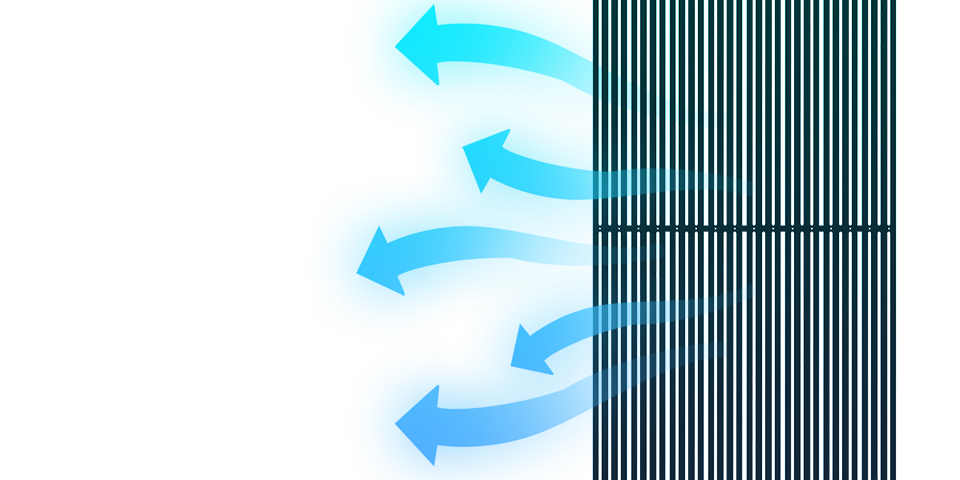 透光率随像素间距不同而变化,在25%-70%之间,有效减少风阻,且不影响玻璃幕墙的采光