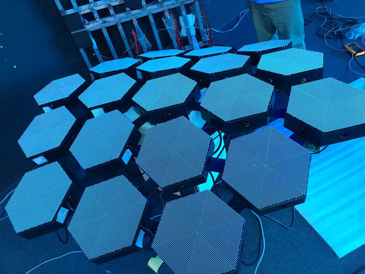 1.创意显示屏要符合安装场地的建筑结构。不同的场景,使用不同的产品造型和结构,而且还可以定制最符合场景的造型。用不同大小的三角形、矩形、弧形拼接出特色的造型。隧道场景使用弧形屏,酒吧使用独特的DJ台,但也不局限于这些场景、这些显示屏。