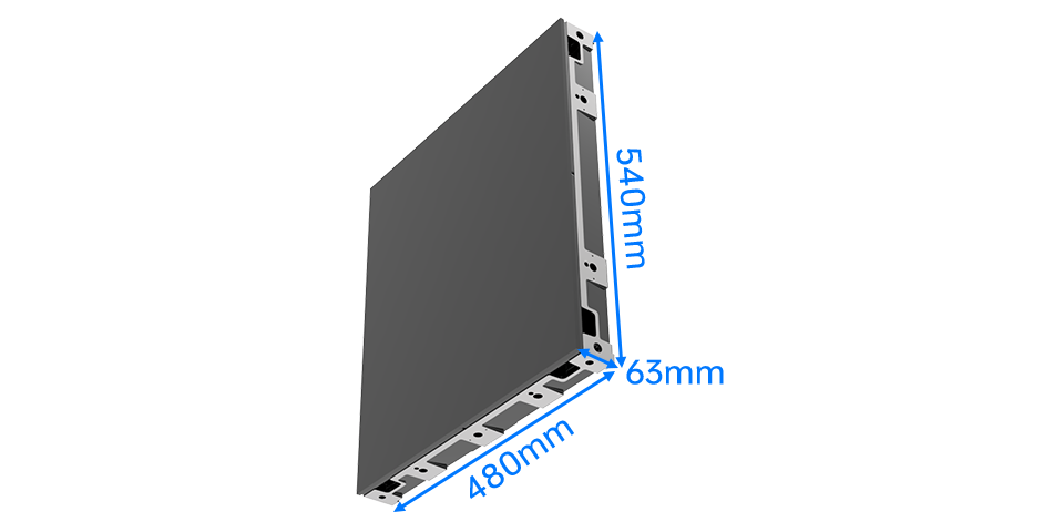 Pixel Pitch P1.25 P1.5 P1.875 P2.5 Pixel Density(pixels/m²) 640,000 444,444 284,444 160,000 Pixel Density(pixels/panel) 165,888 115,200 73,728 41,472 LED Module Dimensions(mm) 240*270 240*270 240*270 240*270 Scan method 1/36 1/30 1/24 1/18 Panel Dimensions(W*H*D)(mm) 480x540/480x270mm 480x540/480x270mm 480x540/480x270mm 480x540/480x270mm No. of Modules Per Panel(W*H) 2*2 2*2 2*2 2*2 Physical Resolution of Module(W*H) 192*216 160*180 128*144 96*108 Physical Resolution of Panel(W*H) 384*432 320*360 256*288 192*216 Weight Per Panel 9.5kg/panel 9.5kg/panel 9.5kg/panel 9.5kg/panel Weight Per m² 36.6kg/m² 36.6kg/m² 36.6kg/m² 36.6kg/m² Cabinet Material Aluminum Aluminum Aluminum Aluminum Servicing Front and Rear Front and Rear Front and Rear Front and Rear IP Rating(Front) Front IP 65 Front IP 65 Front IP 65 Front IP 65 Brightness(after Cal) >3500nits >4000nits >4000nits >3500nits Refresh Rate 1920-3840HZ 1920-3840HZ 1920-3840HZ 1920-3840HZ Horizontal Viewing Angle 160° 160° 160° 160° Vertical Viewing Angle 160° 160° 160° 160° Processing 14bit 14bit 14bit 14bit Colours 281 trillion 281 trillion 281 trillion 281 trillion Contrast Ratio 4,000 : 1 4,000 : 1 4,000 : 1 4,000 : 1 Average Power Consumption 216w/m² 216w/m² 216 w/m² 216 w/m² Max Power Consumption 720 w/m² 720 w/m² 720 w/m² 720 w/m² Operating Temp/Humidity -20 ~ 50℃/ 10% ~ 90% -20 ~ 50℃/ 10% ~ 90% -20 ~ 50℃/ 10% ~ 90% -20 ~ 50℃/ 10% ~ 90% Storage Temp/Humidity -30 ~ 60℃/ 10% ~ 95% -30 ~ 60℃/ 10% ~ 95% -30 ~ 60℃/ 10% ~ 95% -30 ~ 60℃/ 10% ~ 95% Expected LED Lifetime(Max) 100,000 Hrs 100,000 Hrs 100,000 Hrs 100,000 Hrs