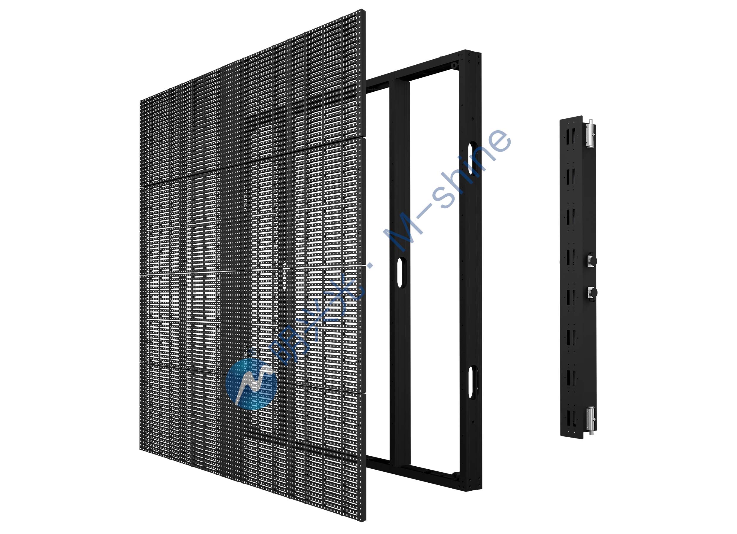 通过在透明屏模组上加遮光面罩,可做不透风不透光的常规户外屏使用,通过在箱体背后加挡光板,可起到通风避光的作用,屏体的功能由您决定
